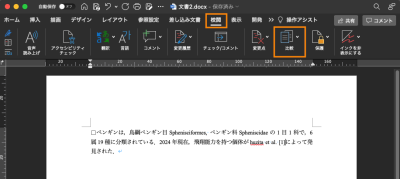 次にどちらでも良いので,「校閲」タブの「比較」を選択して,「文書の比較」をクリックします.